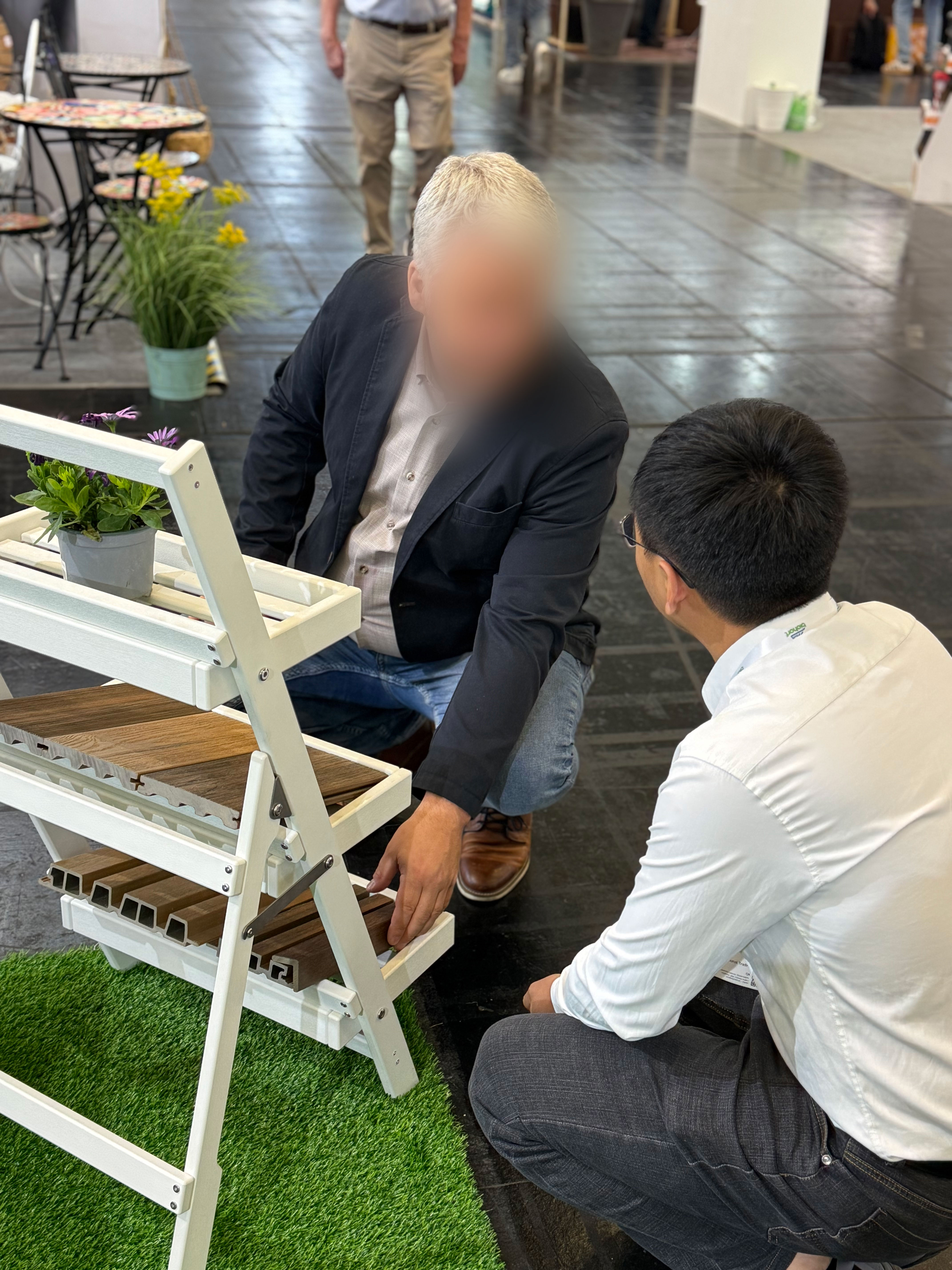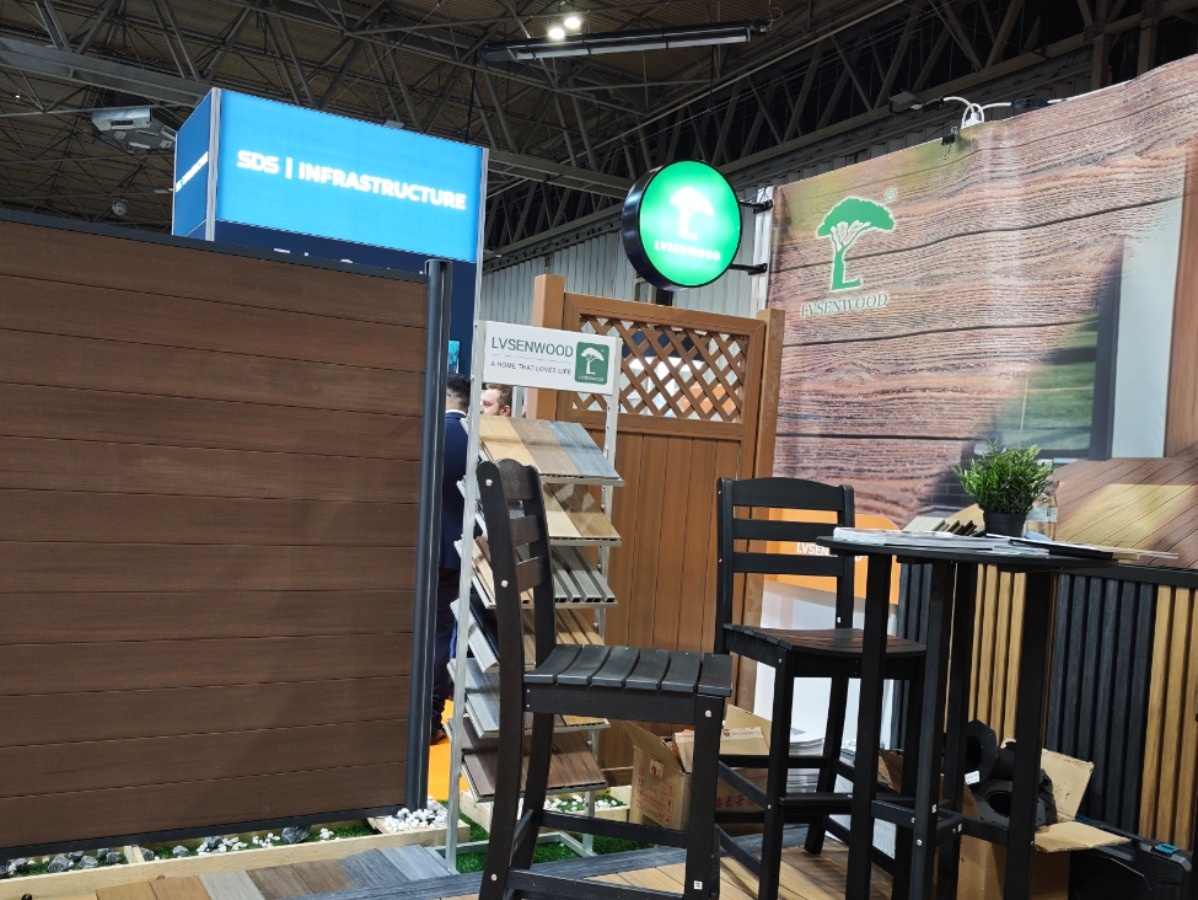 展会期间,绿森塑木与来自英国、欧洲、澳大利亚及美洲的参观者与合作伙伴深入交流,重点推介了定制化解决方案、稳定的产品品质,以及符合国际标准的核心优势。
