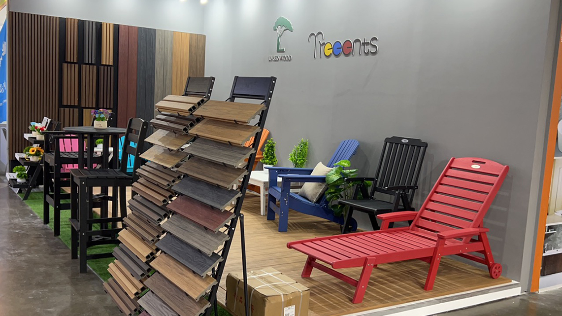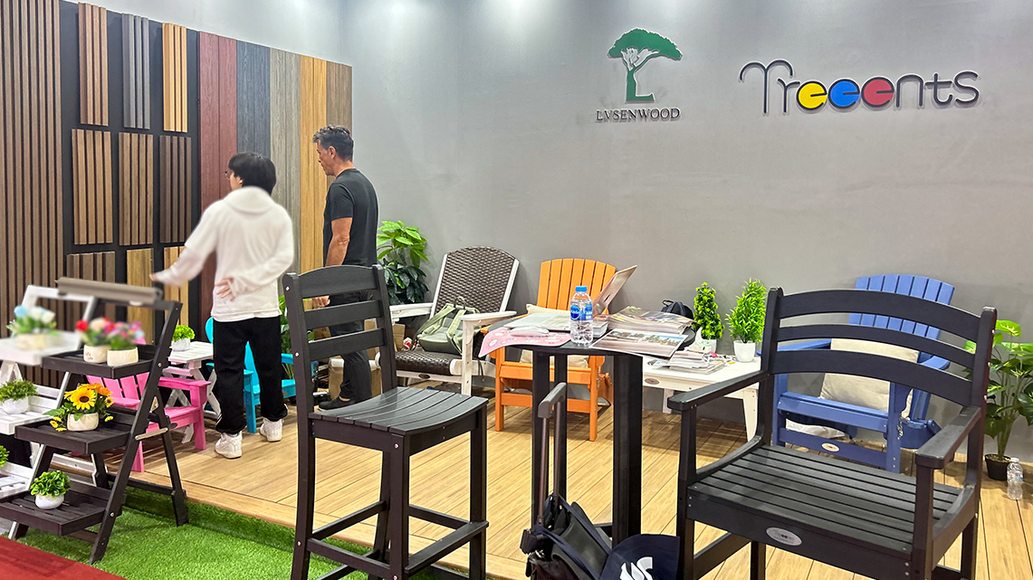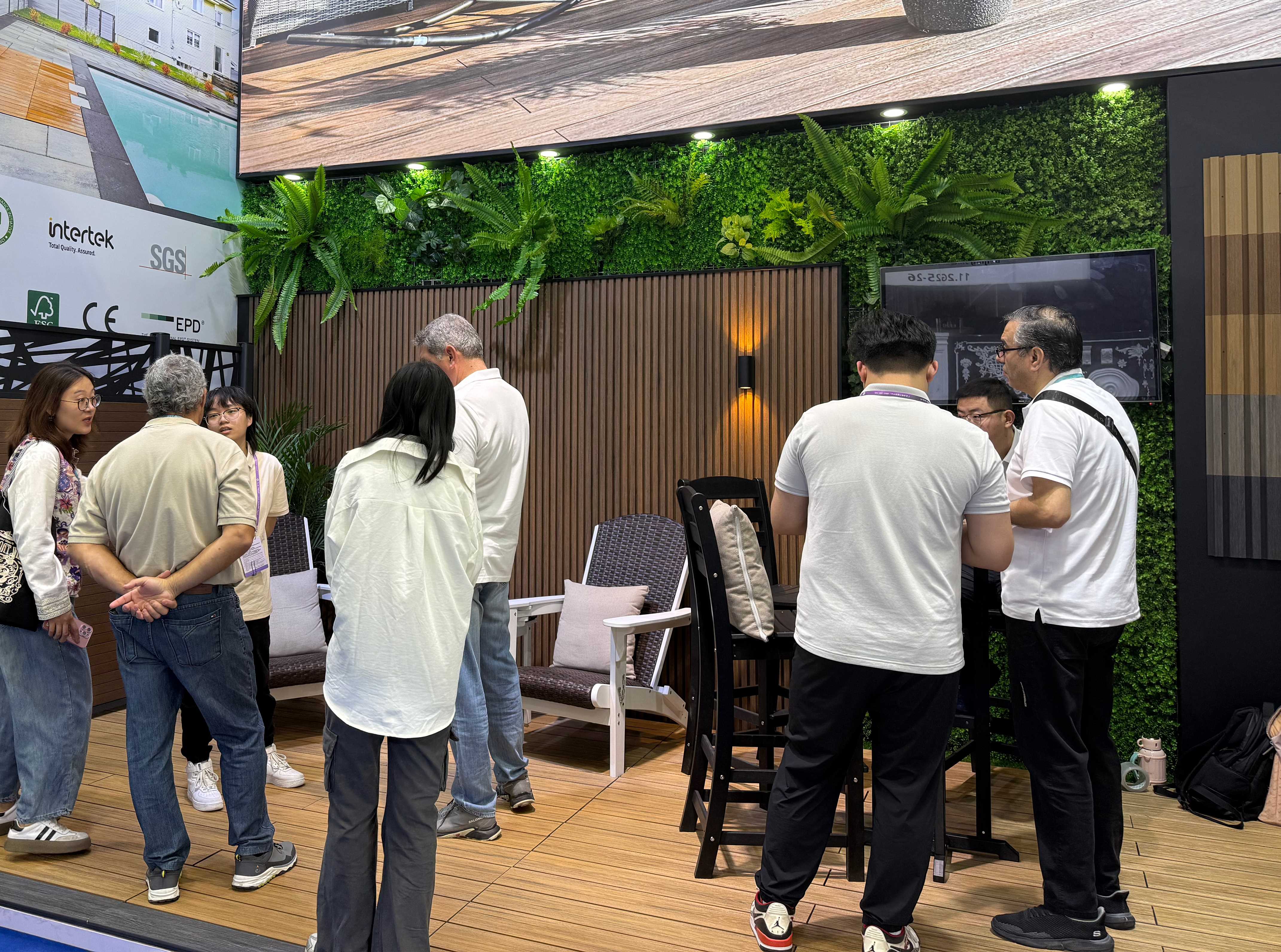 针对泰国高温潮湿、虫害高发的气候特点,绿森塑木展出的户外地板、墙板等产品,兼具天然木质感与抗 UV、抗腐蚀、防虫防蚁特性,且环保可回收,适配当地绿色建筑政策与各类应用场景。