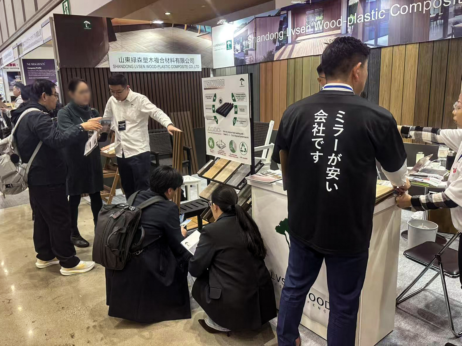 2025年11月19日,山东绿森塑木出展日本东京,呈现绿色户外建材方案。在这场聚焦绿色建筑与可持续发展的行业盛会上,绿森塑木的塑木地板凭借 “颜值与实力兼具、环保与实用并存” 的核心优势,吸引了大量日本本地建筑公司、改造企业及贸易商驻足洽谈。不少专业观众对产品的耐候性、环保指标及木质感表达高度认可,现场达成多项合作意向。此次参展不仅让绿森塑木的优质产品直面日本专业采购群体,更借助这一权威性展会平台,深度对接日本建材市场的绿色需求,进一步提升品牌在日本及东亚户外建材领域的影响力。