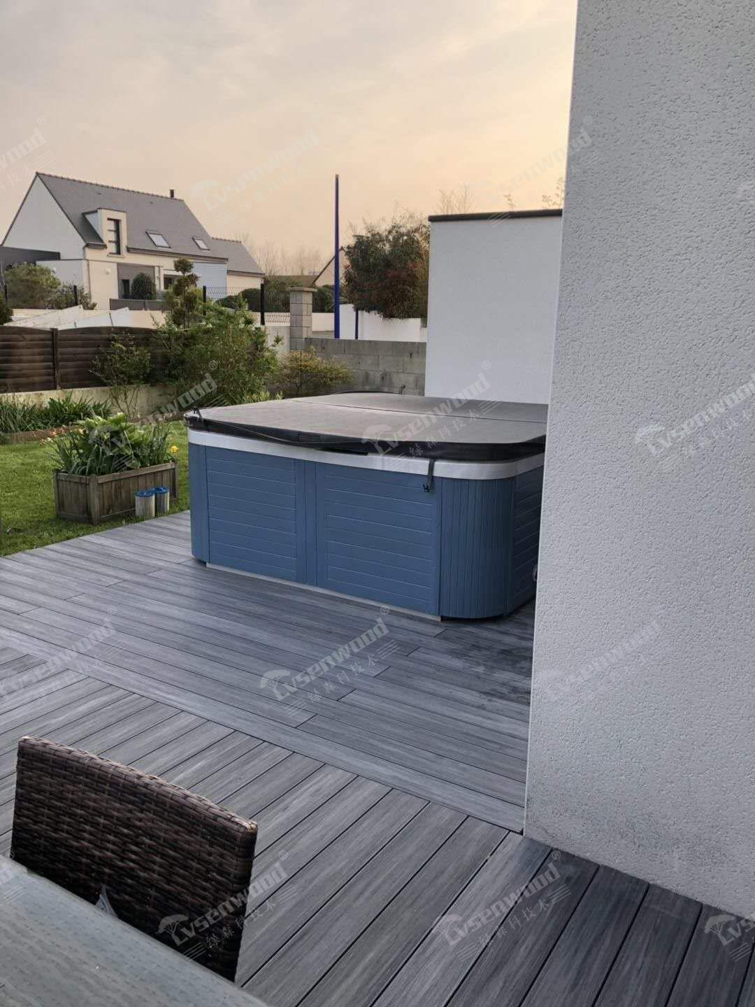 也可以适当的使用其他材料搭配木塑地板来装饰你的平台